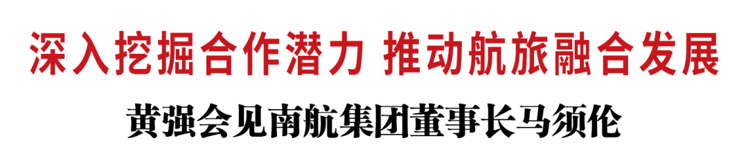 黄强向马须伦一行表示欢迎,对南航集团给予吉林的大力支持表示感谢。黄强说,习近平总书记对吉林振兴发展寄予厚望,党的十八大以来四次视察吉林,今年2月8日听取吉林省委和省政府工作汇报并发表重要讲话。我们不折不扣落实习近平总书记系列重要指示精神,充分发挥“一带一路”向北开放重要窗口作用,聚焦进一步深化对外开放、建设交通强省,加快推进民航业发展,努力打造“一主多辅”、干支协同、安全高效、绿色智慧的民用航空网络。吉林是避暑胜地、滑雪天堂,长白山人参等优质产品享誉海内外,尤其深受粤港澳大湾区游客青睐。南航集团与我省合作潜力巨大,希望进一步优化航线布局,增加运力投入,携手推动航旅融合发展,科学统筹高质量发展和高水平安全,更好把“人气”转化为“财气”,助力吉林全面振兴。