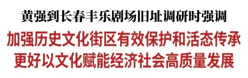 10月31日,省委书记黄强到长春丰乐剧场旧址调研。他强调,要深入学习领会、认真贯彻落实党的二十届四中全会精神,着力加强历史文化街区有效保护和活态传承,更好以文化赋能经济社会高质量发展,推动吉林全面振兴取得新突破。
