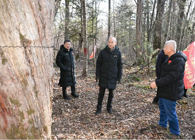 调研中,黄强指出,吉林吉林,吉祥森林。生态是吉林的根本,森林是吉林的标志,绿色是吉林的底色。要爱护森林、敬畏森林,深入学习、大力宣传、认真落实森林法和古树名木保护条例,全面普查省内古树名木,建立档案、挂牌管理,用更严格的措施、更严格的执法保护森林。要深入挖掘古树名木历史和文化价值,促进古树名木资源与生态旅游融合发展。要把科学保护森林特别是古树名木等工作纳入我省“十五五”规划,严格落实林长制要求和属地责任,对非法砍伐林木情况进行倒查追责。各级领导干部要牢固树立和践行正确政绩观,学会算“森林账”,让践行绿色发展理念成为自觉行动。