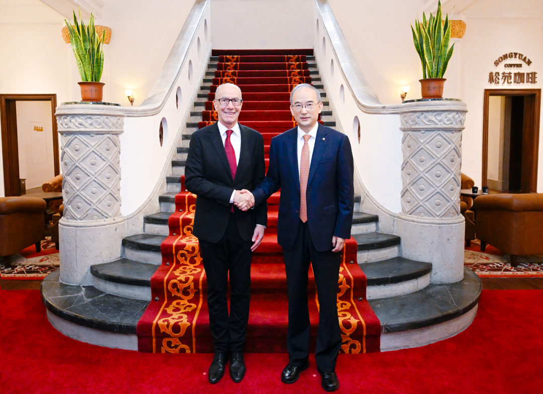 11月26日,省委书记黄强与国际大学生体育联合会主席雷诺·艾德一行在长春松苑咖啡馆茶叙。张野 摄
