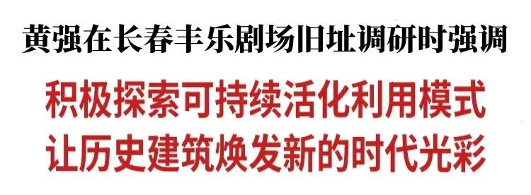 12月6日,省委书记黄强在长春丰乐剧场旧址调研。他强调,要坚持保护第一,积极探索可持续活化利用模式,让历史建筑焕发新的时代光彩,更好赓续吉林文脉,引导广大干部群众增强历史自觉、坚定文化自信。