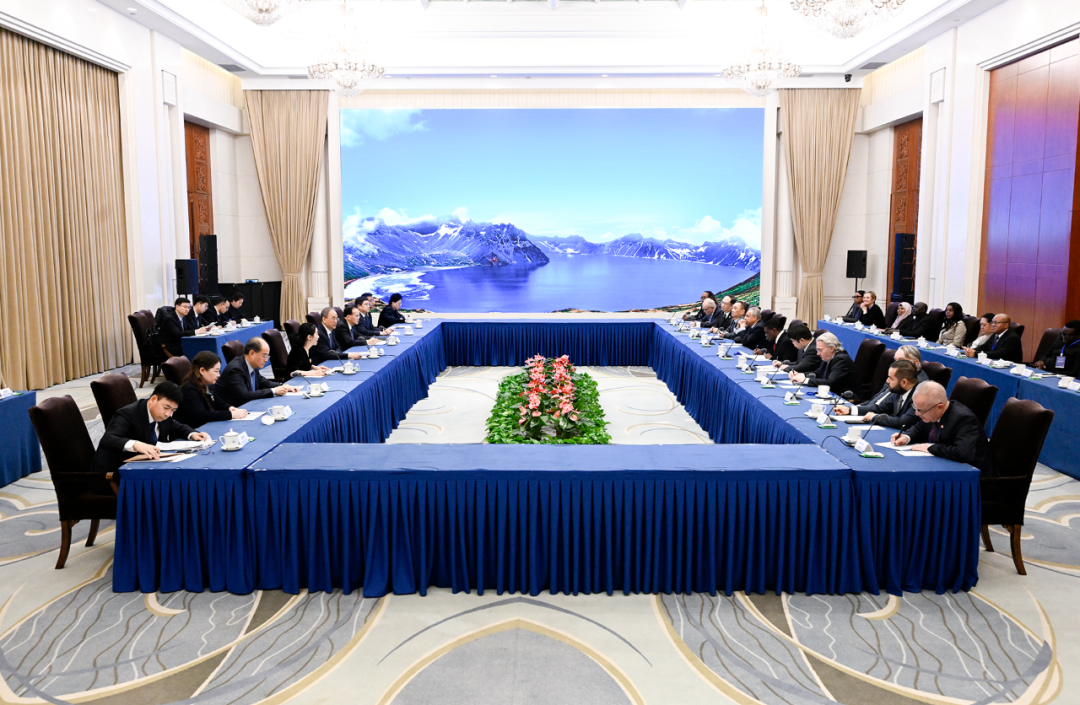 黄强向代表团一行表示欢迎,并简要介绍我省经济社会发展情况。他说,吉林吉林,吉祥森林。吉林是我国知名的避暑胜地、赏雪天堂,大家可以在这里感受到中国工业发展的强劲脉搏、黑土地的勃勃生机、长白山的纯净生态、冰雪运动的火热激情、历史文化的深厚积淀、活力涌动的开放热潮。前不久,中共中央二十届四中全会和中央经济工作会议相继召开,都对开放发展作出部署,释放出“中国开放的大门不会关闭,只会越开越大”的鲜明信号。我们不折不扣贯彻执行中央决策部署,认真编制我省“十五五”规划,努力在高水平对外开放上取得新突破。吉林愿与各国进一步加强投资合作、贸易往来、人文交流,希望各位驻华使节当好连接吉林与世界的桥梁纽带。长春大冬会将于2027年1月举办,欢迎各国大学生踊跃参与这场青春盛会。