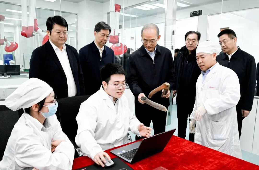 1月8日,省委书记黄强在辽源调研,在华润东阿阿胶马记药业(吉林)有限公司详细了解鹿茸深加工项目推进情况。张野 摄