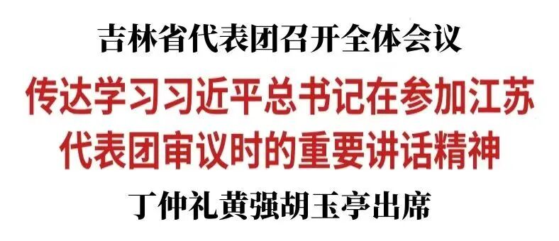 3月6日上午,吉林省代表团召开全体会议,传达学习3月5日习近平总书记参加江苏代表团审议时发表的重要讲话精神。全国人大常委会副委员长丁仲礼作为我省代表参加会议。吉林省代表团团长、省委书记、省人大常委会主任黄强主持会议并讲话。代表团副团长、省委副书记、省长胡玉亭,巴音朝鲁、雒树刚、江金权、景俊海参加会议。