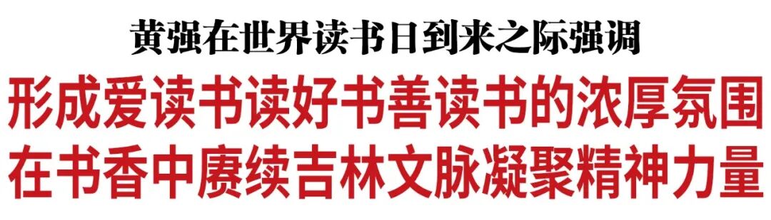 今年4月23日是第31个世界读书日。省委书记黄强近日到长春市“这有书”书店调研时强调,要深入学习贯彻习近平总书记在《求是》杂志发表的《推动全民阅读,建设书香社会》重要文章精神,认真落实《全民阅读促进条例》,引导全社会参与到阅读中,形成爱读书、读好书、善读书的浓厚氛围,更好在书香中赓续吉林文脉、凝聚精神力量。